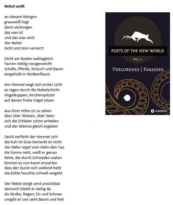 Ausgabe „Poets of the new World“ – hier „Nebel wellt“ (Siegergedicht, S. 114)