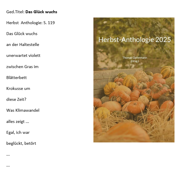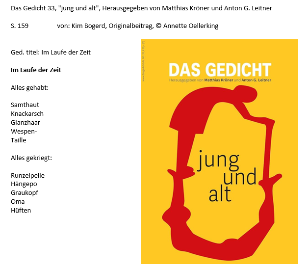 Weitere Gedichte 2023: „Am letzten Zipfel deines Selbst“ ( S. 84) / „Ganz still“ (S. 86), ausgewählt „Ich nehme“ (S. 90)
